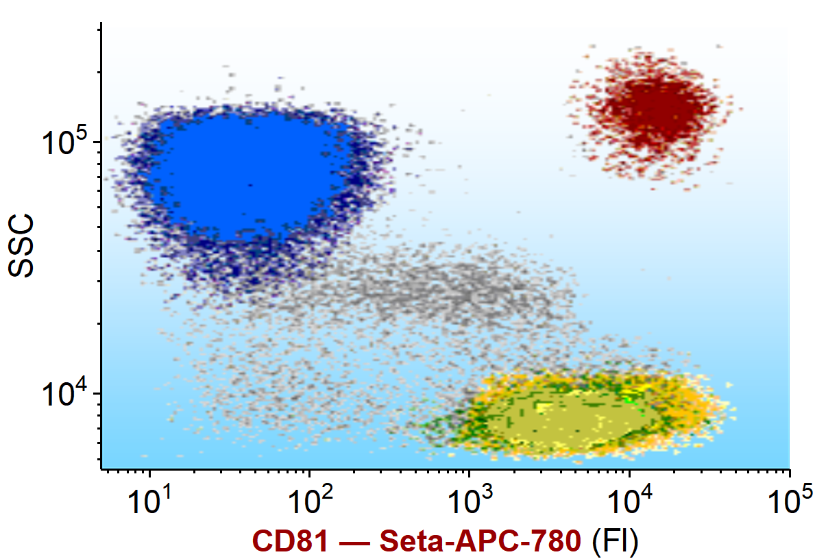 Seta-APC-780 is a significantly brighter and much more photostable replacement for APC-Cy7.