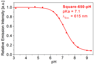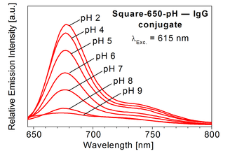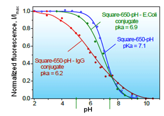 pH measurement in cells: Probes and labels such as Square-650-pH exhibit pKa’s in the physiologically relevant pH range and are very useful to determine the intercellular pH in cells. For more information about these dyes, we refer you to the specs sheet of Square-650-pH and the published literature [9].